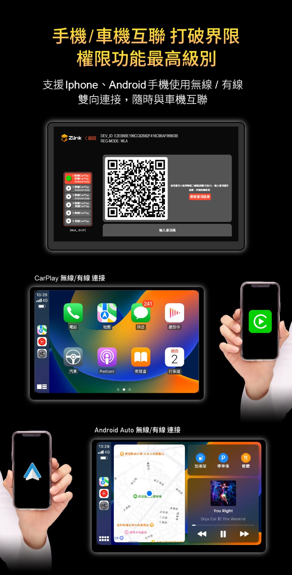 • 內建:ZLINK 5 手機與車機雙向連結 – 適用蘋果/安卓手機無線與有線
