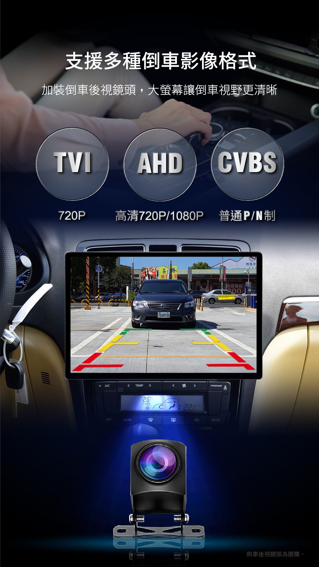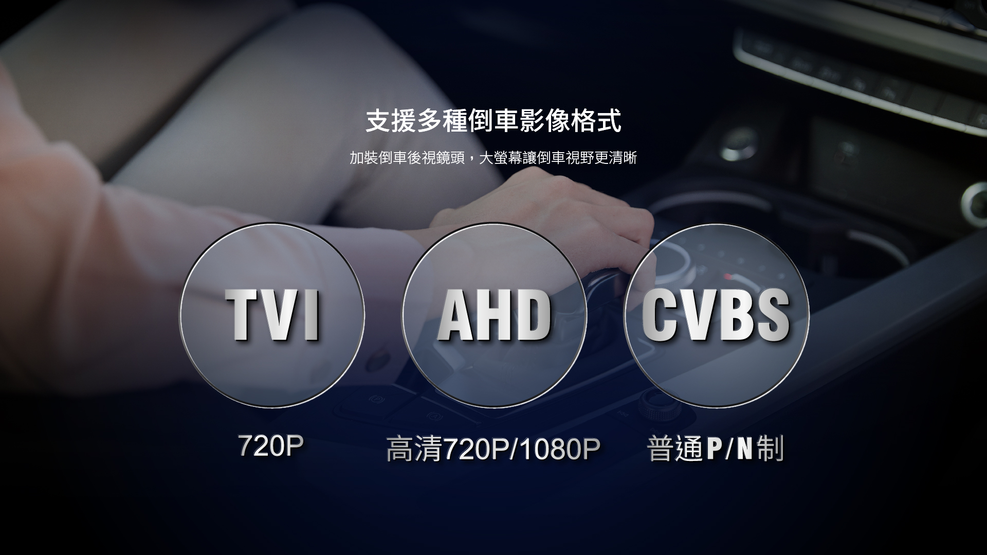 • 支援:倒車格式(CVBS/AHD/TVI)